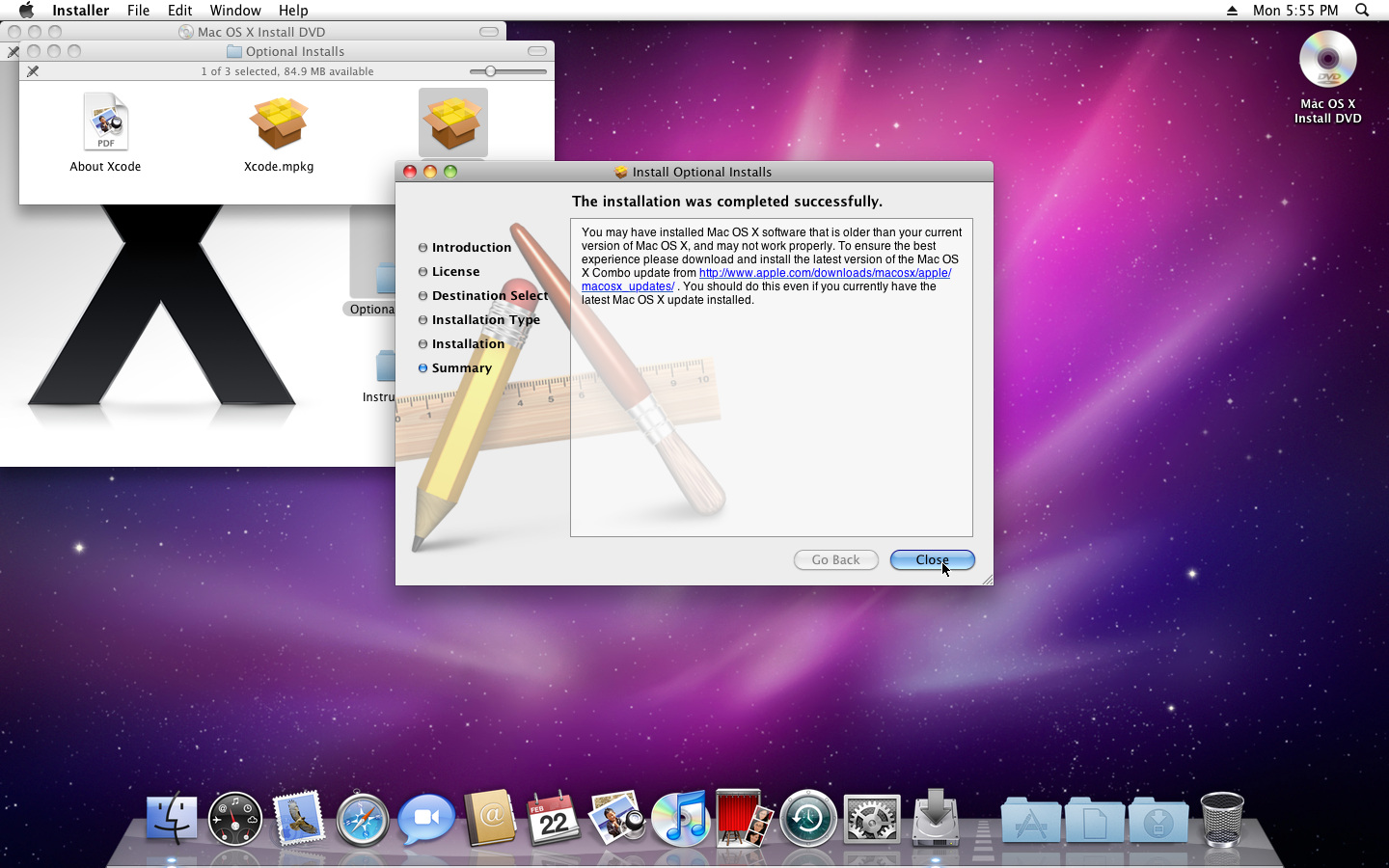 After the installation of X11 is complete, click "Close" and then eject the Installation Disc.