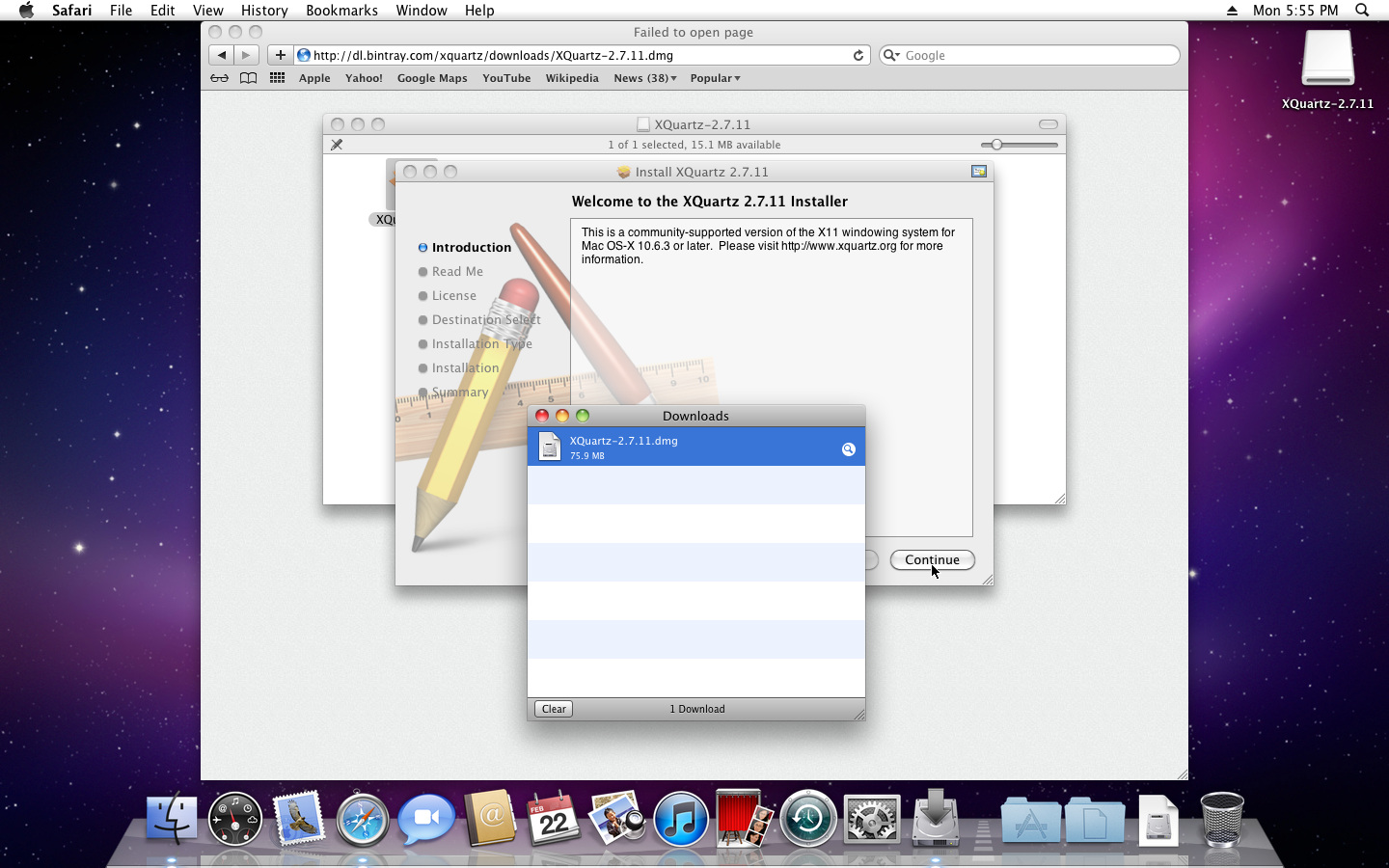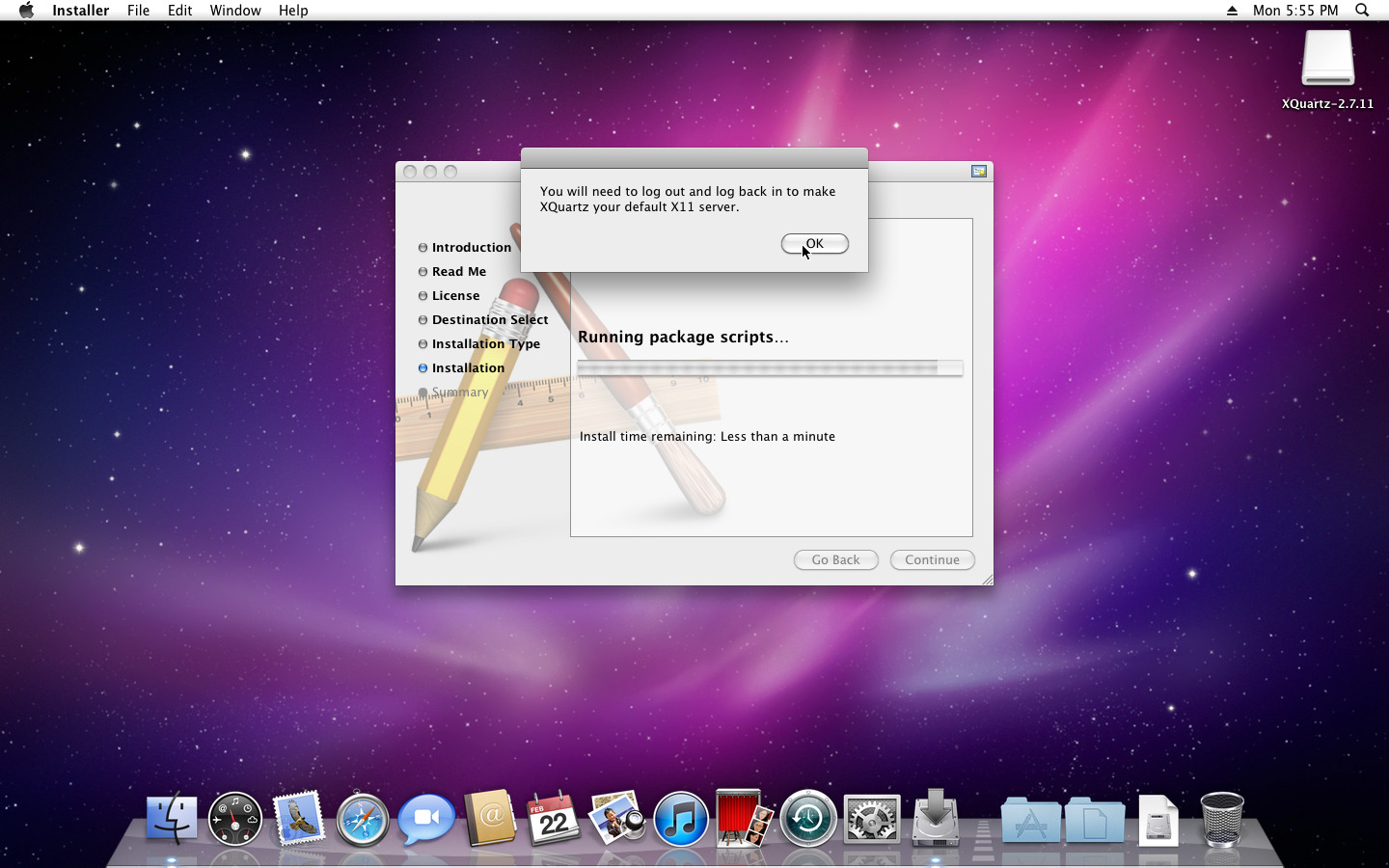When the XQuartz DMG has finished downloading, run the package inside to begin the XQuartz installation process.