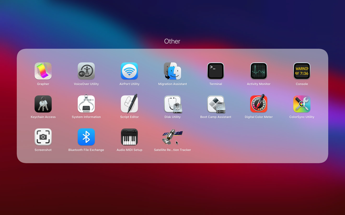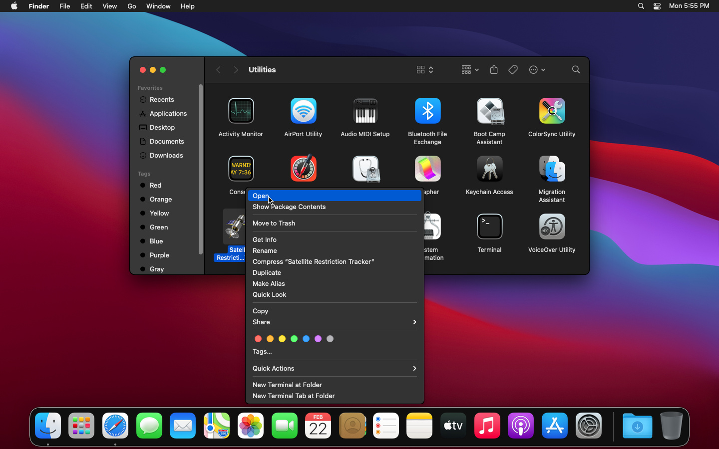 Open "Launchpad", click on "Other", and then click on "Satellite Restriction Tracker".